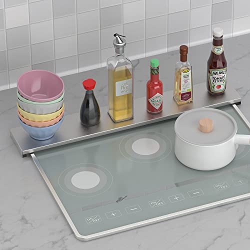 【ロータイプで見た目もスッキリ】フラット薄型タイプ新登場です。高さ2.5cmのスリムデザインで、ガスコンロの五徳より低くすることで、3口目のコンロに調理器具を置いても、フライパンや鍋の底部が当たったり干渉せず調理しやすい設計に仕上げました。薄型タイプで調理くずなども排気口に入りにくく、目立たずスタイリッシュな排気口カバーです。【耐久性に優れ、高級感あるステンレス製】本体は粉体塗装スチール製ではなく、厚さ1mmの食器用ステンレス板を曲げ成型した物なので丈夫です 。オールステンレス製だから火があたっても変形しにくい、耐食性、耐熱性や耐久性に優れています。ガスコンロにもIHクッキングヒーターにも使用できて、どんなキッチンの雰囲気に馴染むシンプルなデザインです。【耐荷重UP&完全一体構造】改良を重ねて、耐荷重10kgを実現しました。奥行10cmのスリムでフラットな天板には、お料理中置き場に困る調味料はもちろん、重たい鍋を乗せてもたわむことはありません。段差や継ぎ目のない完全一体構造なので、お手入れがしやすいです。幅は60.5cm以下のビルトインガスコンロ、IHクッキングヒーターに対応、グリルカバー高さ2.5cm以下対応可能です。【空間を有効活用&排気口保護】コンロ奥の空間通常は非常に狭く、排気口カバーを置いてから収納スペースも拡張してくれます。排気口の網目の掃除がとても大変ですが、この排気口カバーを置くだけで、日々のお料理で排気口に飛び散る油はねや調理くずなどが入り込むのをきっちりガードしてくれます。丈夫なステンレス製でお手入れも簡単で、拭くだけでキレイになり、清潔な状態をキープできます。手間もかからず楽々です。【品質保証】お買い上げ日から弊店は12月間の保証を提供しております。万一保証期間内で品質に問題がある場合や、ご質問やお困り点等ございましたら、ご連絡を頂けると迅速にご対応させていただきます。