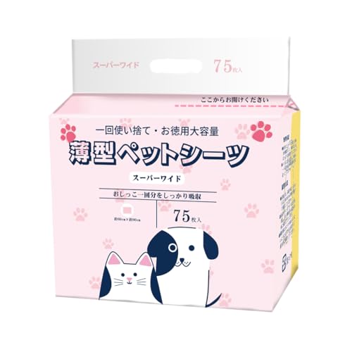 ペットシーツ 薄型 スーパーワイド 75枚 増量 1回使い捨て 無香料 ホワイト/ ピンク(裏面)が激安!