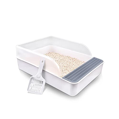 【2サイズ】猫用トイレはSとLの2つサイズがあります。大きな空間のトイレは猫ちゃんのニーズを満たすことができます。各段階の猫の体型に適しています。 本体サイズ(幅×奥行×高さ):L:36.5×49.5×10 cm S:27.4×41.9×8cm【フェンスを高くする】猫トイレフェンスを高くすると、猫砂が飛び散るのを効果的に防ぐことができます。成猫でも子猫でも普通の猫砂を使えます。掃除の心配もありません。フタには猫ちゃんの肉球にはさまった砂を落ちるための穴も無数に空いています【【洗いやすい】省エネ材料】PP樹脂製。バックルで組み合わせ、構造はシンプルで軽量、 分解は簡単、清潔も便利。直接水で洗い流せればいいです。【スコップ付き】こちらの製品には猫砂スコップが付いていますので、別の掃除用品を購入する必要はありません。本体に取り付けできるので、置き場所に困りません。猫用トイレを受け取ったら使用できます。【アフターサービス】お使いいただく中で商品の品質に関する問題や不具合が生じた場合には、どんな些細なことでも結構ですので、遠慮なくご連絡ください。私たちは迅速かつ適切な対応をいたします。私たちは理想的なアフターサービスを提供します