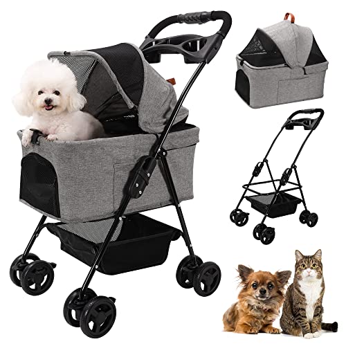 Lukang ペットカート 折り畳み式 ペットカート 小型犬 360度回転 ブレーキ付き4輪ホイール ペットカート 分離型 収納カゴとカップが激安!