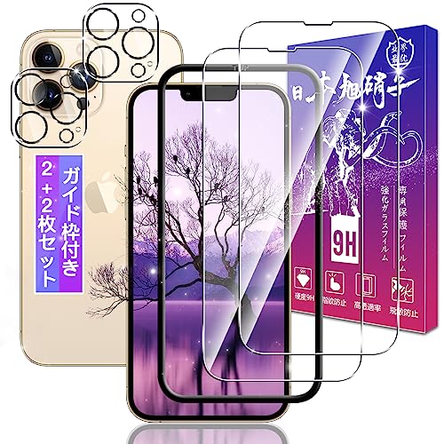 【2+2枚セット】対応 iPhone13 Pro ガラスフィルム 2枚 + iPhone 13 Pro レンズフィルム 2枚【ガイド枠付き が激安!