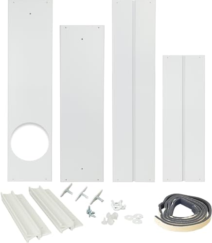 様々な大きさの窓に対応できる移動式エアコン用テラス窓用パネル。【対応窓高さ】72cm~220cm【セット内容】窓パネルA×1、窓パネルB×1、窓パネルC×1、窓パネルD×1、ネジ×4、蝶ナット×3、ワッシャー×3、固定板×3、補強ピン×6、スポンジテープ×1、レール用アタッチメント×2ダクトパネルでお部屋の熱を室外に排出して快適に。色:ホワイト