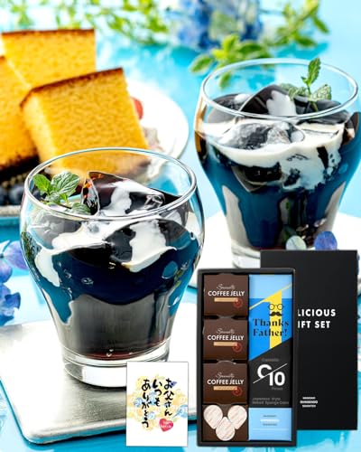 【賞味期限】コーヒーゼリー 発送より約4ヶ月(パッケージに記載)。ミルクポーション 約1ヶ月(製造日より30日/パッケージに記載)。/ 幸せの黄色いカステラ 発送より約2週間(製造日より30日/パッケージに記載)。【商品特徴】コーヒーゼリー3個/ミルクポーション3個/幸せの黄色いカステラ1本(10切れカット済み)/1本の外寸 約7.0x27.5x6.0cm/1本の内容量 270g/包装紙 ギフト専用。/防腐剤不使用で安心してお召し上がりいただけます。直射日光、高温多湿を避けて保存してください。【無料サービス】日頃の感謝を伝える「お父さんいつもありがとう」メッセージカードをお付けしています。【【父の日】洋菓子ギフト】スペシャルティコーヒー使用のコーヒーゼリーと、モンドセレクション金賞を受賞('08.6.2)した「幸せの黄色いカステラ」のギフトセット。贈り手の気持ちも伝わるお父さんへのプレゼントです。【贅沢なコーヒーゼリー】最高ランクの豆を焙煎したスペシャルティコーヒーのコーヒーゼリー。コーヒー伝来の地長崎出島で、スペシャルティコーヒーの魅力を発信している野田信治氏が監修。スッキリした上品な味わいと、プルンとしたなめらかな食感が人気です。【幸せの黄色いカステラ】熟練職人によって焼き上げられた、長崎カステラ。新鮮な卵と天然蜂蜜が生み出す、しっとりふわふわの食感と豊かな風味が特徴です。パッと目を引く鮮やかな色を組み合わせたスタイリッシュなデザイン。「Thanks Father!」の文字をあしらった、父の日専用のカステラパッケージです。【ご注文時の留意事項】①[置き配]はショップ出荷では対応不可。(Amazon出荷では対応) ②ギフト配送は[□ギフトの設定]にチェックを入れて下さい。※未チェックの場合、ご購入者様(送り主様)の氏名が一切記載されません。③賞味期限のある商品ですので、お召し上がり時期に合わせてのご注文や、注文後の配送予定情報(ショップ出荷の場合はショップからの連絡メール)を必ずご確認下さい。