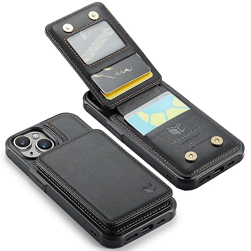 【カードホルダー付きiPhone 15 Plusウォレットケース】IDカード、クレジットカード、ドアアクセスカード、運転免許証用のカードスロットが4つあり、かさばる財布を屋外に持ち出す必要はありません。 二重の強力な磁気バックルで持ち物を安全に保ちます。【【RFIDブロック付きiPhone 15】Plusケース】クレジットカード、デビットカード、IDカードをNFC携帯電話によるスキャンから保護するRFIDテクノロジーアプリケーションで、プライバシーのセキュリティを確保します。【磁気カーマウント対応】ウォレットケースの背面に強力な金属プレートが内蔵されており、磁気カーマウントにしっかりと取り付けられます。【カメラとスクリーン保護】カメラの上に0.5 mmの盛り上がったエッジとスクリーンの上に1.6 mmの盛り上がったエッジを備えたフルフレームカバーで、アップグレードされた落下防止保護システムを実現し、日常の傷、落下、衝撃から携帯電話を保護します。【12ヶ月保証】顧客満足が私たちの追求です。 満足のいく購入のために12か月の保証を提供します