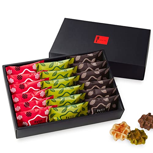 ワッフル・ケーキの店 R.L(エールエル)のリエージュワッフル「プティワッフル」しっとりとした生地のほのかな甘味と、ざらめ砂糖のざくざく食感が心地よいワッフルです。ほどよいサイズ、個包装でお好きなタイミングでお召し上がりいただけます。オーブンで温めたり、アイスを添えたりとアレンジしても楽しく、美味しく。お世話になった方へのギフトや、学校や職場でのお配りにも使いやすいです。【内容量と賞味期限】◆内容量 プティワッフル18個(プレーン、ショコラ、抹茶 各6個ずつ) ◆賞味期限 製造日+50日 ※出荷時15日以上 ◆保存方法 常温保存 ※直射日光を避け冷暗所で保存【ギフト利用もご安心ください】値段のわかるものは同封しません。おしゃれなパッケージでそのままギフトとしてお使いいただけます。手提げ袋を注文箱数分つけてお届けします。「■ギフトの設定」をお選びいただくと、注文者様を贈り主として運送伝票に印字します。(システム上、住所は弊社工場となります。ご了承ください。)【テレビで紹介されました】11/30、12/29放送のフジテレビ「めざましテレビ」12/24放送のTBS「Nスタ」でR.L(エール・エル)の商品が紹介されました。