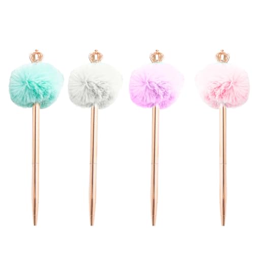 Sewroro 4本 クラウン トップ ペン クラウン ボールペン ペン ポンポン ボールペン ペン ぬいぐるみ ペン 書き込み用 (ミックが激安!