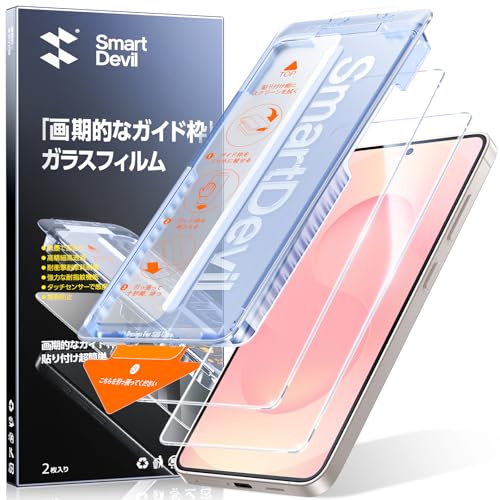 【指紋認証対応】SmartDevil Galaxy S25/S24用ガラスフィルム 指紋認証対応 2枚セット 光沢 ガイド枠付き 貼り付け超簡単 自動除塵 米軍MIL規格 黒縁なし 落下保護 滑らかな手触り ギャラクシーS25/S24対応 保護フィルムが8%OFFのセール!