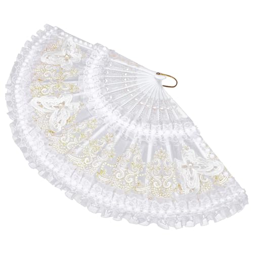 CRAFTHROU うちわ レースファン ヴィンテージファン ファブリックファン 折り畳み 生地 pp 旅行写真 白い 逃すが激安!