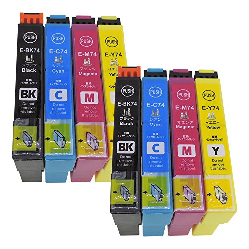 IC4CL74 (IC74)BK/C/M/Y 4色×2 8本セット [エプソン用] 新互換インクカートリッジ残量表示付き (最新型ICチップが激安!