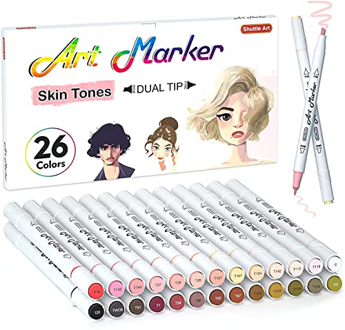 Shuttle Art マーカーペン 25色セット 肌色 茶色 スキンカラー ブレンダーペン付き 太細両端 アートマーカー 細身 細字 速乾が激安!