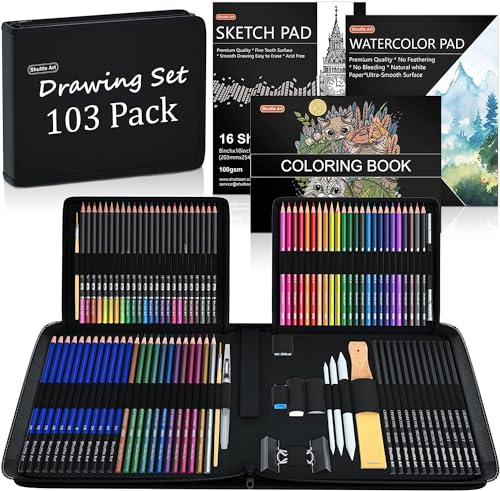 Shuttle Art 色鉛筆 103点 デッサン 鉛筆セット 水彩色鉛筆 油性色鉛筆 メタリック色 スケッチ イラスト 落書き 消しゴム・が激安!