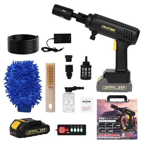 高圧洗浄機【2026年新登場・軽量版・コードレス・9MPa】ハンディ高圧洗浄機 バッテリー 残量表示 PSE認証済み 水道接続不要 収納ケース付き 5メートル超柔軟ホース 加重フィルター 新型透明泡ノズル 新型多機能5in1ノズル ペットボトル使用可能 小型自吸式 コンパクト設計 洗車用グローブと床が激安!