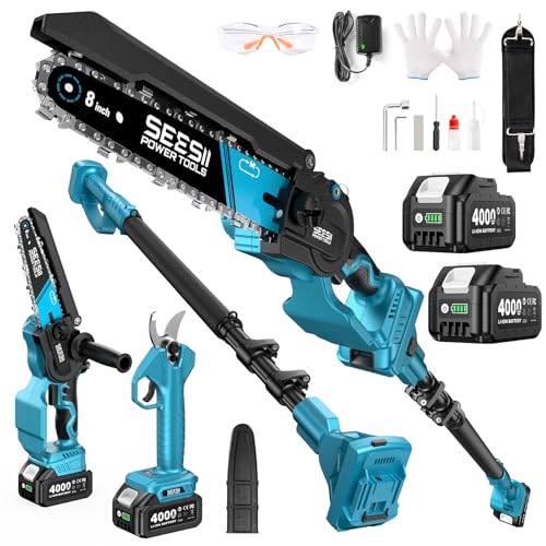 【2026年新型】SEESII たかえだ 電動チェーンソー 充電式剪定ばさみ 8インチ 高枝チェーンソー 強力ブラシレスモーター 4.0Ah大容量バッテリー2個 電動のこぎり 軽量 コードレス オイル注ぎ機能 延長ポール 125~250cm無段階調整 1台4役 パワフル 庭木剪定・木工切断に最適 プが激安!