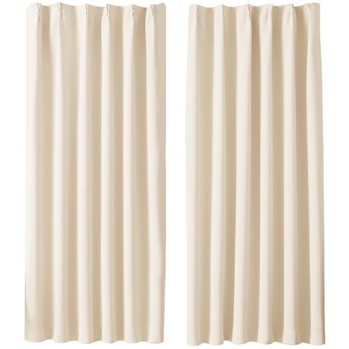 Hansleep カーテン 1級遮光 2枚組 断熱 防寒 防音 省エネ 厚手 無地 おしゃれ 洗える 寝室 リビング用 (ブラック, 幅10が激安!