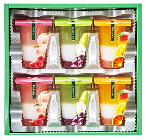 原材料:ピーチミックス味砂糖(国内製造)、水あめ混合異性化液糖、桃ピューレ、濃縮桃果汁、還元水飴、乳製品乳酸菌飲料(殺菌)、洋酒、発酵乳(殺菌)、苺加工品、加糖練乳、ラズベリー加工品、ラズベリーペースト、寒天、本わらび粉/ゲル化剤(増粘多糖類)、ph調整剤、乳酸ca、香料、酸化防止剤(v.c)、酸味料、着色料(アントシアニン、カロテノイド、紅麹)、(一部に乳成分・ゼラチン・大豆・ももを含む)マンゴーミックス味砂糖(国内製造)、水あめ混合異性化液糖、マンゴーピューレ、濃縮オレンジ果汁、還元水飴、乳製品乳酸菌飲料(殺菌)、発酵乳(殺菌)、濃縮パッションフルーツ果汁、加糖練乳、洋酒、寒天、本わらび粉/ゲル化剤(増粘多糖類)、ph調整剤、安定剤(加工デンプン、ペクチン)、乳酸ca、香料、酸化防止剤(v.c)、カロテノイド色素、(一部に乳成分・オレンジ・ゼラチン・大豆を含む)ラ・フランスミックス味砂糖(国内製造)、水あめ混合異性化液糖、ラフランス果汁、濃縮りんご果汁、還元水飴、乳製品乳酸菌飲料(殺菌)、発酵乳(殺菌)、洋酒、濃縮ぶどう果汁、加糖練乳、寒天、本わらび粉/ゲル化剤(増粘多糖類)、ph調整剤、乳酸ca、香料、着色料(アントシアニン、クチナシ、カロテノイド)、酸化防止剤(v.c)、(一部に乳成分・ゼラチン・大豆・りんごを含む)【内容量】ピーチミックス味103g2個、マンゴーミックス味103g2個、ラ・フランスミックス味103g2個【商品サイズ(高さx奥行x幅)】21.7cm×22.4cm×7.1cm【原産国】日本