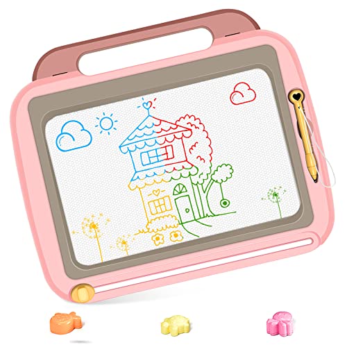 【繰り返し使えるお絵かきボード 】子供向けお絵描きボードはスライド式消しレバーをデザインして、マグネットペンと組み合わせて、何度でも描けて汚れる心配もありません!レバーを左右に移動するだけで描いた絵を簡単に消せます。それに、ペンと本体に糸が結ばれているので、ペンを失くす心配もありません。その余裕な時間は子供さんと一緒に遊んで、ラクラクな親子タイムを楽しめましょう。【カラフルなお絵描きボード】描くカラーは青、緑、赤、黄色という4色あって、付属のマグネットペンやマグネットスタンプでカラフルな絵が簡単にできちゃいます。お子様の想像力と考える力を伸ばすカラフルお絵描きボードです。子供の創造性と想像力を刺激し、手と目の協調能力と色知覚を養成します。【大きいサイズおえかきボード】幅40cm*高さ31cm、描くエリアサイズは幅30*高さ19.5cm、一般的なお絵描きボードよりずっと大きいです。十分な空間でお子様が自由に発揮できます。取っ手付きなので、持ちやすいです。教室、保育園、遊び場、家庭などでの子供の芸術活動を応援します。 数学、絵画、スケッチや落書きなどをサポートします。【子供に最高の贈り物】お絵かきおもちゃは入学シーズンに子供のおもちゃとして最適なプレゼントです。誕生日、子供日、クリスマス、お祭りやあらゆる祝日に送るギフトとして最適なチョイスです。お絵かきセット内容 本体×1、専用ペン×1、マグネットスタンプ×3。タコ・カメ、魚型3個付きでお絵描きを幅広くて自由にデザインを楽しむことができます!【安心させるアフターサービス】製品保証は1年間です。初期不良があった場合、または、ご不明な点がございましたら、お手数をおかけ、お気軽にアマゾンの「アフターサービスー」->「注文履歴」により、対応な注文に「出品者」->「出品者に連絡」ボタンをクリックし、弊社と連絡するようお願い申し上げます。ご連絡を頂けると迅速にご対応させていただきますのでご安心くださいませ。