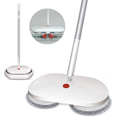 【最新のデザイン:自動洗浄機能搭載】収納スタンドに置き、ワンタッチを押すと、電動モップのローラーは自動洗浄と脱水が可能。全使用過程は手洗い必要なく、手を守ってくれます。低ノイズで夜中でも自由に床掃除できる。,【バッテリー長持ちで使用時間がより長い】Cleanhomeコードレス回転モップクリーナーは11.1Vモーター、2000mAh充電式なのでバッテリー頻繁に交換必要がありません。4時間だけでフル充電し、60-90分間連続に使えます。普通の電動回転モップより清掃力と使用時間が良いです。このコードレス回転モップを使用する時力を入れても、類似品のようにモップの回転はすぐ止まるではなく、正常に回転し続けますので、掃除効果を保証できます。無線式で電線に邪魔せず、どこでも自由に掃除できます。日頃忙しく家事をしている母親、奥様にとって腰をかがめず掃除がより楽になります。,【床掃除モップパッド・清潔能力が強い】コードレス回転モップクリーナーには先端技術を採用し、1分間で200回回転できます。力を入れないでいろいろな汚いものをつかんで、掃除の時間を節約できます。モップパッドは汚れ除去能力が抜群、マイクロファイバーの素材は吸水性、耐摩耗性、耐久性に優れており、床を壊すことがありません。フローリング、ウッドカーペット、タイル、大理石、畳、ビニールマット等、多様な床材に対応できます。,【スプレーモップ・扇形噴水】❥❥水を30CMまで噴射でき、広範囲まで気楽に水拭きできます。隠し水槽を持っていて、すべての水はモップのヘッドに保管されています。他のスプレーモップのように瓶が壊れてしまうことはありません。満水状態で75回噴霧できます。 ❥❥乾拭き:水や牛乳、こぼれたジュースの除去。水拭き:ほこりや油などのお掃除。,【電動モップ内容・品質保証】☞☞サイズ:43*122cm 本体*1 洗浄桶(自動洗浄機能搭載)*1 マイクロファイバークロス*2 ポール*2 日本語取扱書*1 計量カップ*1 ☞☞電動モップはご購入日から12ヶ月の保証が付いています。万が一、初期不良や故障などが発生した場合は、どうぞお気軽ご連絡ください。この回転モップクリーナーにつきましてご不明点やご質問がございましたらご連絡を頂けると迅速に対応致します。お客様にご満足頂けるよう精一杯対応いたします。