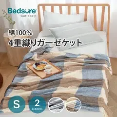 【吸湿性・発散性】 Bedsureのガーゼケットは水分を吸収する特性である吸湿性、そして吸収した水分を発散させる特性である。発散性にすぐれています。汗をよく吸い取り、水分を発散してくれるので常にさらっとした肌触りです。汗ばむ夏の夜でも肌にまとわりつかず、快適に眠ることができます。軽量でさらりとした使用感は、赤ちゃんのお昼寝にも最適でしょう。 【肌触りが抜群】 Bedsureのガーゼタオルケットは肌ざわりがやわらかく、使えば使うほど風合いが良くなることが特長。繰り返し洗って水を含むたびにふんわり度が増していく幸せも楽しめます。ガーゼ素材が赤ちゃん用の肌着によく使用されていることからもわかるように、肌に触れてもチクチクせず、静電気も起こらないので小さなお子さまにも安心です。 【一年通して使える】 ガーゼケットは薄いため夏だけの寝具という印象が強いですが、適度な保温性を持っているのでオールシーズン活用できる優れ物。夏は冷房対策に、秋冬は掛け布団の間に挟むように使うことで保温力を実感できるでしょう。残暑の蒸し暑い時期も汗でベタベタせずサラリと快適に眠れます。また、敷き布団の上にシーツのように敷くとあたたかく眠れるオススメの使い方です。 【軽くて手持ち便利】 Bedsureのガーゼケットはかさばらずコンパクトです。ガーゼケットは繊維の目が粗く、薄くて軽いためかさばりません。タオルケットよりも厚みがなくコンパクトなので体に負担をかけず、部屋間の持ち運びもラクラクです。 【Bedsureからの保障】 1979年成立以来