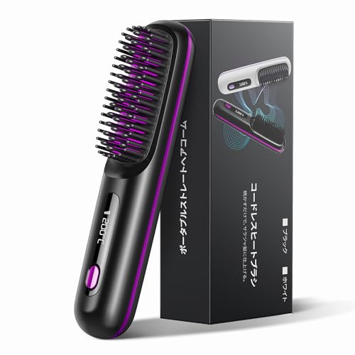 ✅【コードレス&コンパクト】本体は230gまでコントロールできた軽量化したボディです。コンパクトサイズと軽さので、気軽に外出時や旅行先に持ち運べます。コンパクトサイズで細かいニュアンス作りもできます。1台でふんわりストレート、ボリュームアップなど様々なスタイリングを実現するブラシ型ヘアアイロンです。ブラシのように髪をとかすだけで、簡単に自然でツヤのある髪を目指します。✅【6000mAh大容量&自動電源OFF機能】セラミックコーティングセラミックコーティングされたプラシは熱伝導がよく、摩擦を抑えることで髪へのダメージを軽減します。 6000mAhの大容量電池を搭載しており、最長90分間も持ちます。同類品より電池容量アップ!使用時間延長!使用後15分後自動的に電源がオフになる機能が付いております。【✅【3段階温度調&30秒急速加熱】】160℃~200℃まで、髪質によって相応しい温度に調整できます。3秒間長押しすると温度が切り替わります。髪質やスタイルに合わせて温度を調整できます。約30秒で温度が立ち上がり、朝の忙しい時に便利です。クッション機能により髪にかかる圧力と抵抗を抑え、髪への負担を軽減させました。【✅【やけど防止設計】】ヒートブラシの熱された部分が髪に触れる面積がちょうどよかったので、髪の毛が受けるダメージが少なく、髪の傷みが気になるお方にとても適しています。初めてブラシアイロンを使う方にも安心してお使いいただけるよう、やけど防止設計となっています。✅【パッケージ内容&1年間安心保証】コードレスヒートブラシ*1、充電ケーブル*1、ヘアピン*2、日本語取扱説明書*1。商品に何か問題(初期不良、破損、部品不足など)を発見された場合は、ご遠慮なくお問い合わせください。(注文履歴から出品者にお問い合わせ)。