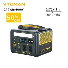 激安ShopDD限定クーポンで10000円割引です!激安ShopDD限定公開 Vtoman jump 600x 10000円クーポン! 【コンパクト大容量・高出力】VTOMAN 600Xは299Wh/96000mAhで600W(瞬間1200W)出力。AC定電力機能で定格以上の家電も電圧を下げて作動可能(非対応機種あり)。軽量設計で携帯しやすく、アウトドアや防災に最適です。