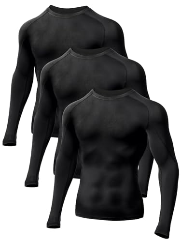 Odoland メンズ 長袖丸首コンプレッションウェア 3枚組 吸汗速乾 加圧シャツ 筋トレ スポーツインナー ブラック Lが大特価の50%OFF!!