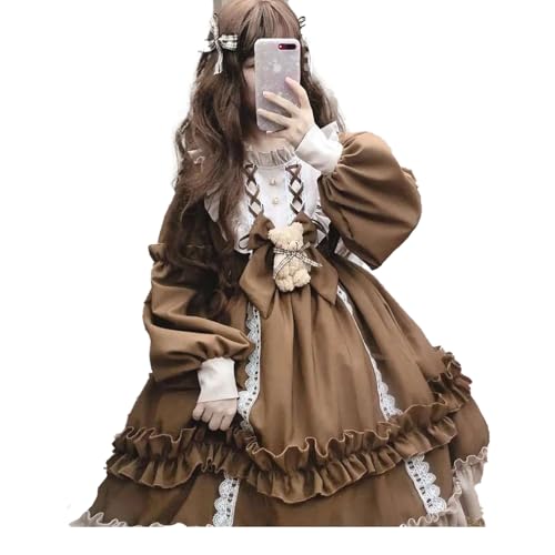 シックなブラウンと爽やかなライトブルーの2色展開で、それぞれが違った魅力を感じさせてくれます。レトロで貴族風のデザインが特徴的なこのワンピースは、フリルたっぷり、レース素材もたくさん使われておりお姫様のような装いです。細部までこだわったデザイン。