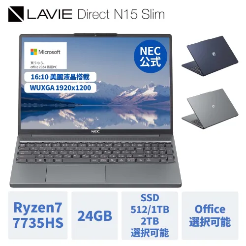 NEC LAVIE Direct N15 Slim ノートパソコン 15.3型 Windows 11 Home AMD Ryzen7-7735HS メモリ24GB SSD選択可能 Office 2024選択可能が激安!