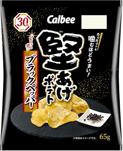 カルビー「堅あげポテト ブラックペッパー」は、厚切りじゃがいもを低温でじっくり丁寧にフライする直火釜揚げ製法によって生み出された、独自の堅い食感が特徴のポテトチップスです。噛むほどにじゃがいもの旨みとブラックペッパーの刺激的な風味が広がり、一度食べたら止まらない美味しさを追求しました。おやつはもちろん、お酒のおつまみとしても最適な一品です。
